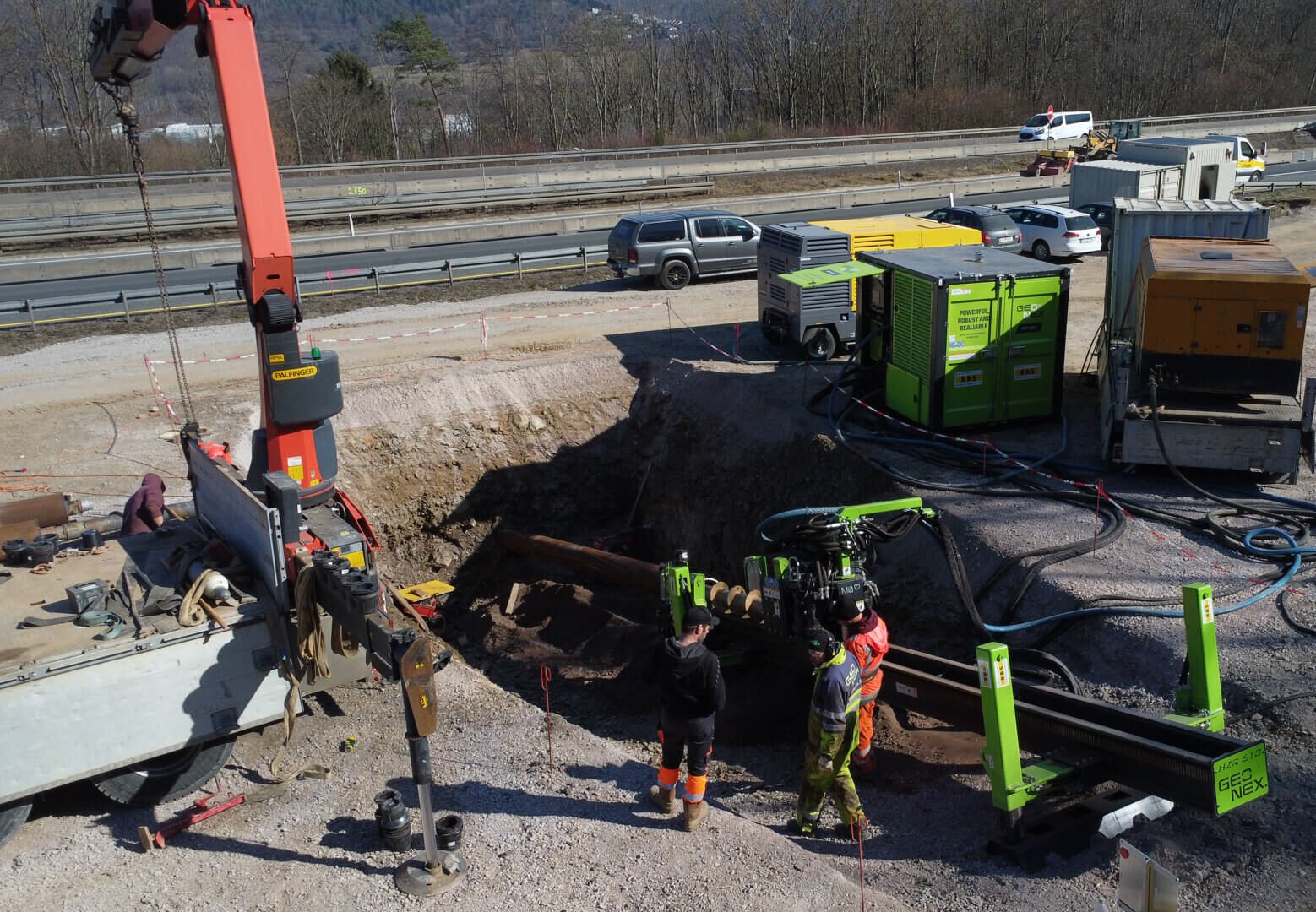 Geonex offers a full suite of tooling for the HZR610, including DTH hammers, pilot bits, ring bits, augers, and hole openers—covering casing sizes from Ø219 mm to Ø812 mm. The modular tool system allows fast adaptation between bores, reducing idle time and making the HZR610 a highly flexible platform for changing project needs.