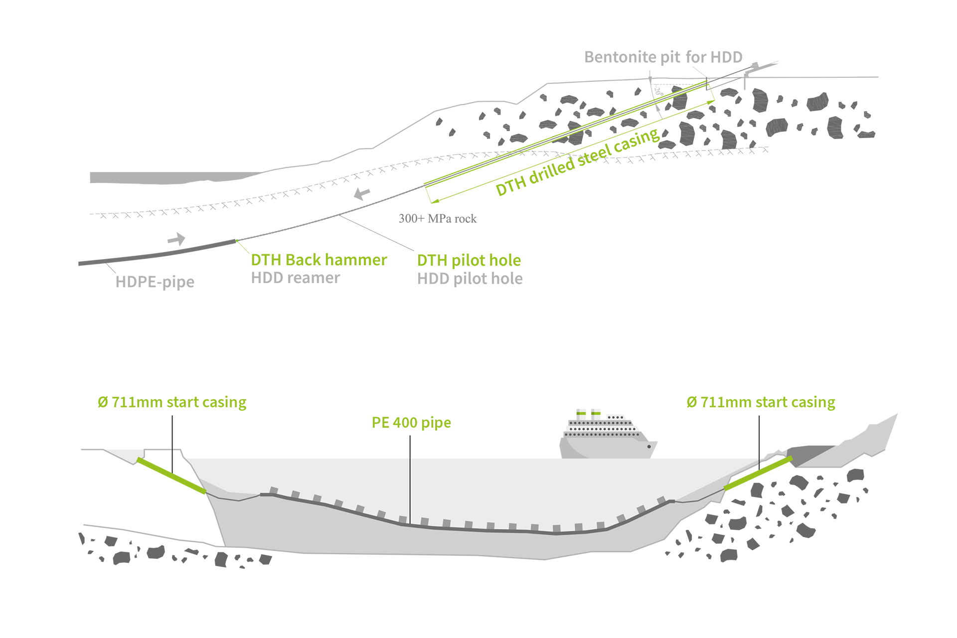 Geonex start casings have been used in a variety of demanding HDD projects worldwide—from urban utility crossings to environmentally sensitive wetland installations. Examples include Ø406 mm and Ø914 mm casings in Sweden, Finland, and the U.S., where traditional HDD entry methods were either too risky or ineffective due to surface conditions or fractured rock. With the start casing in place, contractors achieved greater accuracy and significantly reduced the need for grouting or remediation.