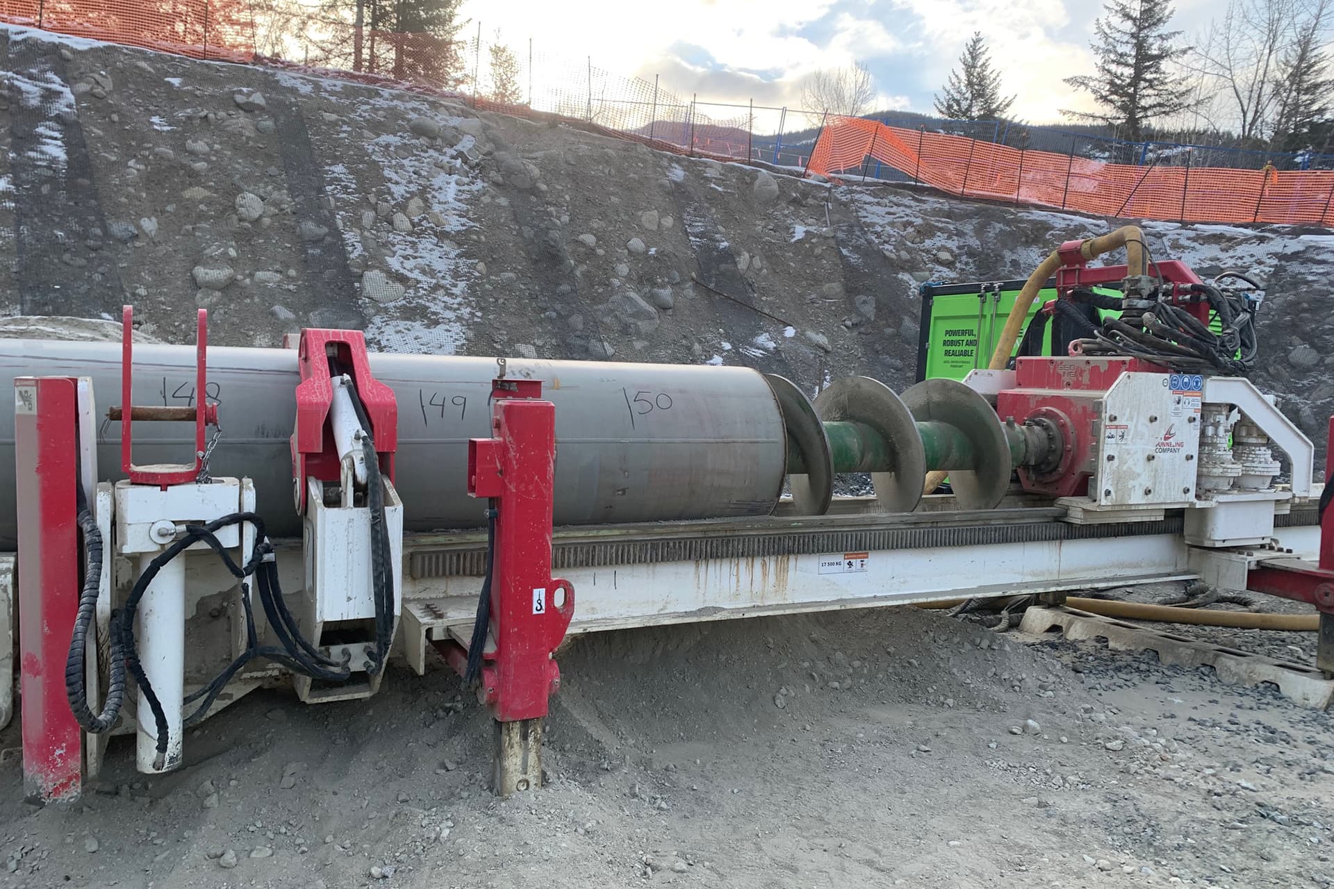 GEONEX Inc., a leading manufacturer of complete Horizontal Hammer Boring systems, worked extensively with the TTC team to evaluate anticipated conditions to determine the feasibility of deploying the equipment. With over 10,000 completed installations in similar conditions in Europe, GEONEX was confident in their HZR1200 drill machine with 42-inch tooling to perform. Having experience in smaller diameters with the GEONEX Equipment, TTC invested heavily in the technology, expanding their capabilities and their experience.