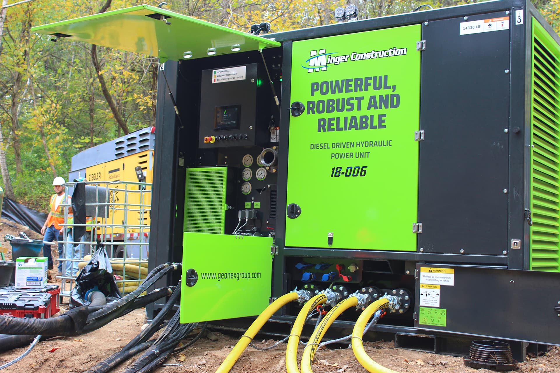 The PP180HA is a compact and efficient power unit designed to support the HZR220 horizontal boring rig. Equipped with a 180 kW diesel engine and integrated air compressor, it delivers reliable hydraulic and pneumatic output in a jobsite-ready format.